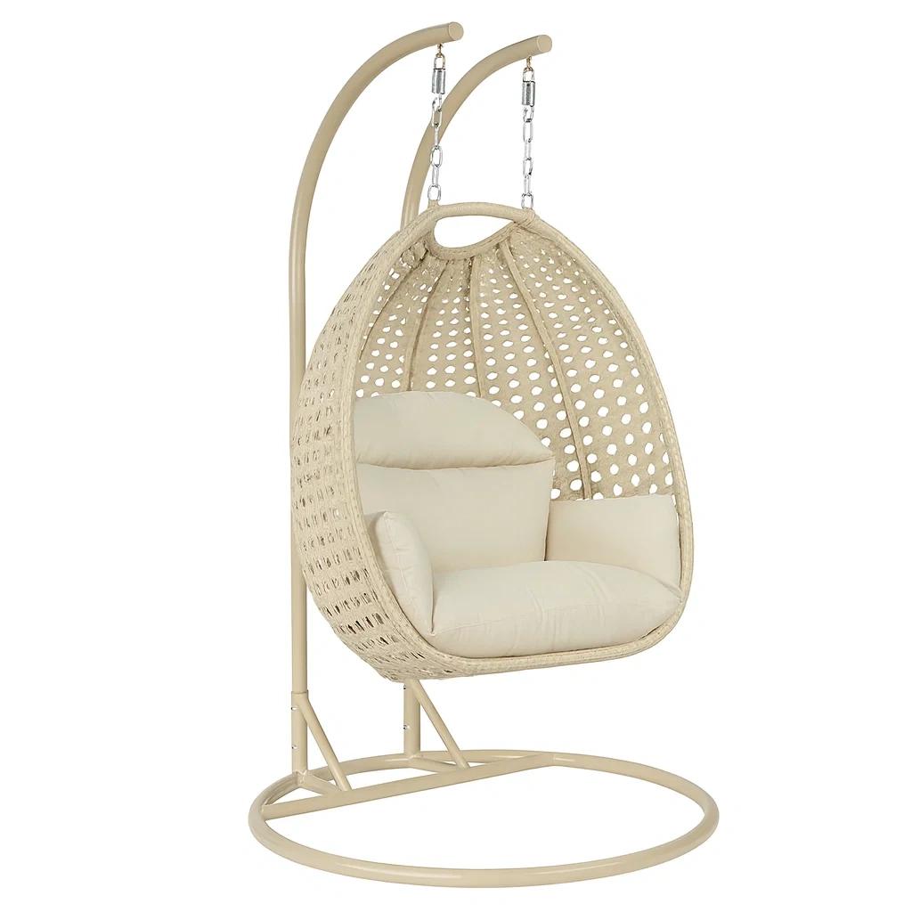 Fauteuil suspendu en forme d'œuf en rotin synthétique avec coussin en polyester et structure en acier