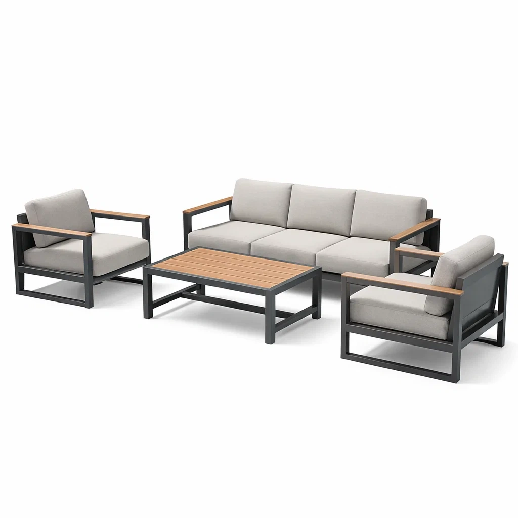 Ensemble de canapés de salon de jardin en aluminium et acacia avec coussins gris